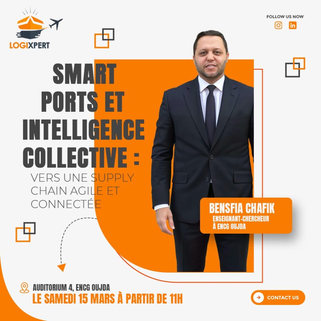 🚛🚢 Le monde de la logistique évolue, et les ports intelligents sont au cœur de cette transformation ! Rejoignez-nous le 15 mars à 11h00 à la Salle des Actes pour une formation exclusive avec notre Pr. Chafik Bensfia sur l’avenir des supply chains agiles et connectées !